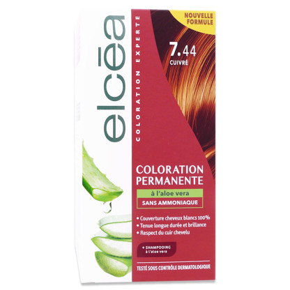 ELCEA COLORATION EXPERT : COULEUR 7.44 CUIVRE est en vente en ligne sur le site de votre parapharmacie à prix discount, offrant une solution de coloration capillaire idéale pour une couverture optimale des cheveux blancs.
