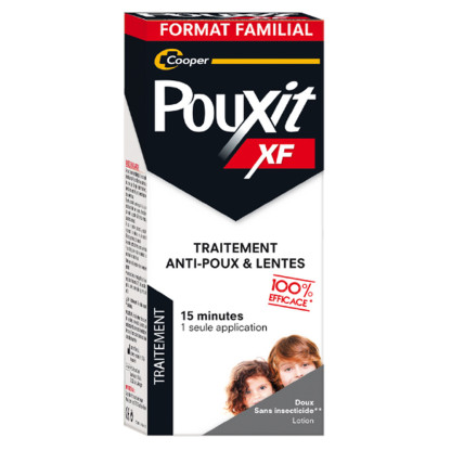 Pouxit lotion anti-poux de COOPER, la lotion qui tue et élimine poux et lentes du cuir chevelu chez les enfants de plus de 6 mois et les adultes.