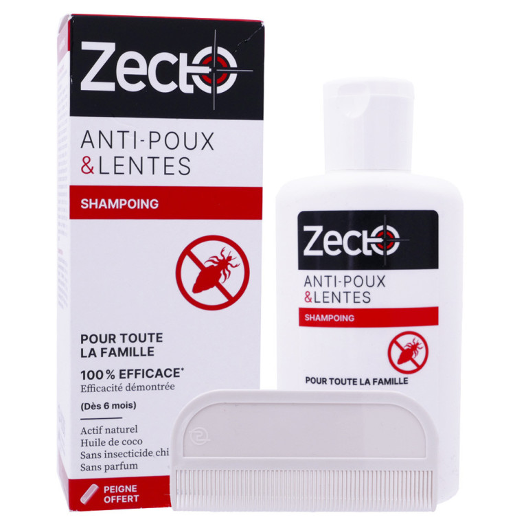 Zecto, marque reconnue pour ses solutions capillaires, propose un shampoing à la texture douce, enrichi en huile de coco bio, un actif naturel à 100% qui offre des propriétés lavantes et moussantes, remplaçant votre shampoing habituel. Ce produit garantit l'élimination de 100% des poux en seulement 15 minutes, sans recourir à des insecticides chimiques ni à des parfums artificiels, respectant ainsi la sensibilité du cuir chevelu. Un peigne fin est inclus pour faciliter le retrait des lentes et des poux morts.