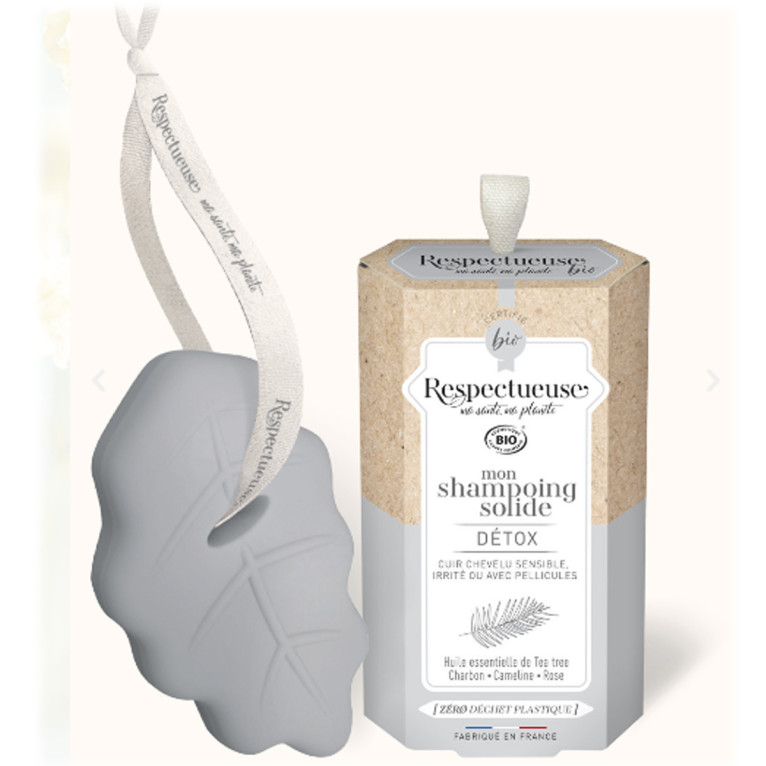 Ce produit de qualité est fabriqué par un laboratoire renommé, garantissant ainsi son efficacité et sa sécurité d'utilisation. Ce shampooing solide Detox Bio est formulé à partir d'ingrédients naturels soigneusement sélectionnés pour leurs propriétés purifiantes et régénérantes. Sa formule contient de l’huile essentielle de Tee Trea qui assainit et purifie le cuir chevelu et aide à traiter naturellement les problèmes de pellicules, du Charbon végétal activé qui détoxifie le cuir chevelu et les cheveux et capture toutes les impuretés (particules de pollution, résidus de produits coiffants, excès de sébum ), de l’huile de Cameline qui apaise les cuirs chevelus irrités et protège les cuirs chevelus sensibles tout en nourrissant, de l’huile de Rosier Muscat qui aide à régénérer les cuirs chevelus irrités et hydrate les cheveux ainsi qu' un conditionneur d’origine naturel au fort pouvoir démêlant.. Avec ce produit vos cheveux retrouveront ainsi leur éclat naturel et sont débarrassés des résidus qui les alourdissent. Ce shampooing solide Detox Bio est adapté à tous les types de cheveux, même les plus sensibles. Son format solide permet une utilisation économique et pratique, idéal pour les voyages. Offrez à vos cheveux un véritable moment de détente et de bien-être avec le shampooing solide Detox Bio de Respectueuse. Sa texture agréable et son parfum délicat vous transportent dans un univers de fraîcheur et de légèreté. Adoptez ce produit de qualité pour des cheveux sains, propres et éclatants de beauté. N'hésitez plus et commandez dès maintenant le