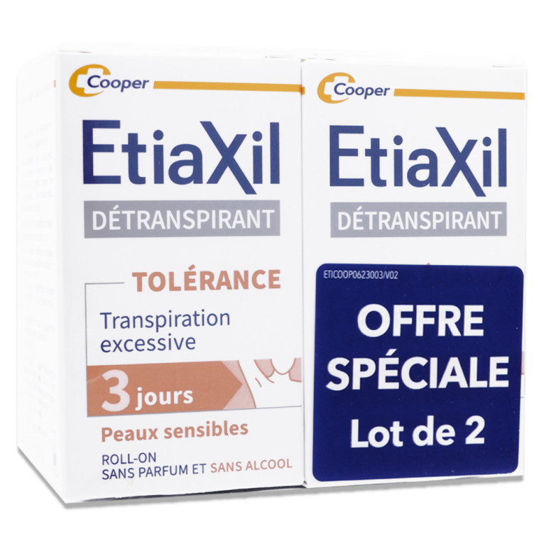 ETIAXIL TOLERANCE DEODORANT DETRANSPIRANT 2X15ML est en vente en ligne sur le site de votre parapharmacie à prix discount, offrant une protection anti-transpirante et anti-odeurs pour les peaux très sensibles, notamment au niveau des aisselles, avec une efficacité prouvée cliniquement de 3 jours.
