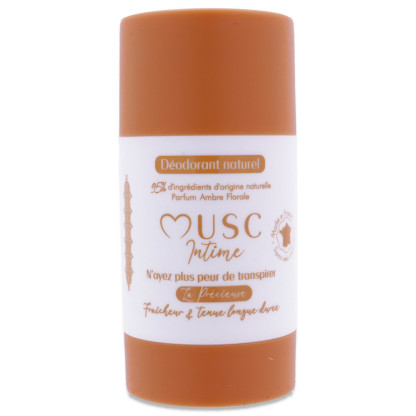 MUSC INTIME DÉODORANT SOLIDE LA PRÉCIEUSE 50G est en vente en ligne sur le site de votre parapharmacie à prix discount, un déodorant solide idéal pour une utilisation quotidienne et adapté aux peaux sensibles.