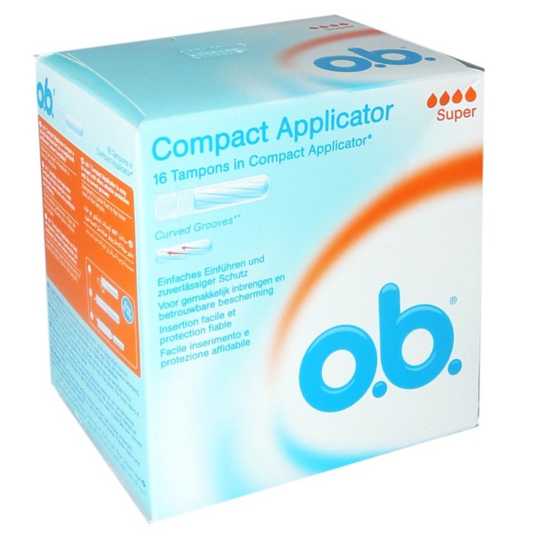 La marque o.b. ®, symbole de la liberté de la femme, propose une large gamme de tampons répondant à tous les besoins hygiéniques en matière de taille, d’intensité de flux, avec ou sans applicateur… Dotés d’un voile protecteur et de rainures incurvées, les tampons o.b. compact super s’insèrent tout en douceur et se mettent en place facilement en épousant les formes du corps, tout en absorbant le liquide à l’intérieur du tampon pour une sécurité maximale. L’applicateur permet une insertion plus facile. Leur format compact permet une utilisation en toute discrétion.