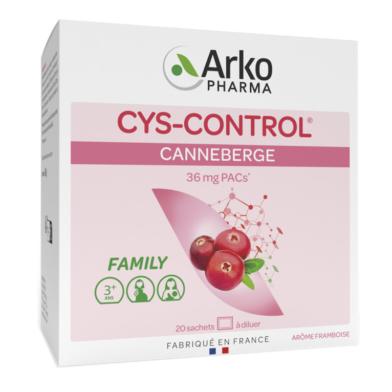 Cys-control est un complément alimentaire à base de Canneberge. Cys control apporte journalièrement 36 mg de proanthocyanidines de Canneberge ou cranberry originaire d'Amérique du nord. La Canneberge est une plante à petite baie rouge. Elle pousse naturellement dans les tourbières, les forêts d'altitude, les mousses des landes tourbeuses, voire les prés sableux.