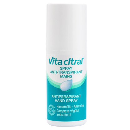 Vita Citral Spray Anti-Transpirant Mains 75ml, en vente en ligne sur le site de votre parapharmacie à prix discount, est le produit idéal pour lutter contre la transpiration excessive des mains.