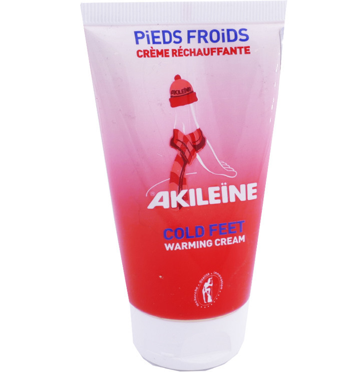 AKILEINE est une marque du laboratoire ASEPTA, conçue pour traiter les problèmes cutanés des pieds. La marque répond aux besoins des pieds fatigués ou à problèmes (ampoules, pieds secs, transpiration…) pour permettre de retrouver du confort au quotidien ou pendant les activités sportives.AKILEINE COLD EFFET PIEDS FROID, est une crème aux extraits de plante (Ginko Biloba, Pépin de Raisin) aux vertus dermo-protectrice. Une crème qui procure une sensation de chaleur grâce au vanillyl butyl éther afin d’améliorer la circulation sanguine et de réchauffer les pieds froids. Les pieds retrouvent un confort absolu pendant 30 à 60mn.