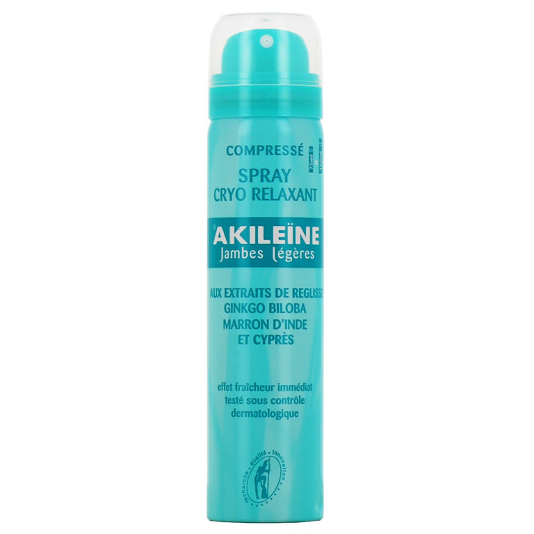 AKILEINE Jambes Légères Spray Cryo relaxant discount des Laboratoires Asepta, une solution en spray très frais aux extraits de plantes dans votre parapharmacie en ligne à prix discount, pour soulager les sensations de jambes lourdes et fatiguées.