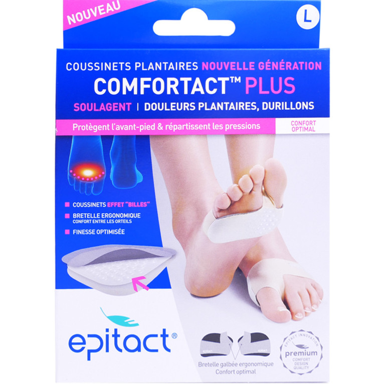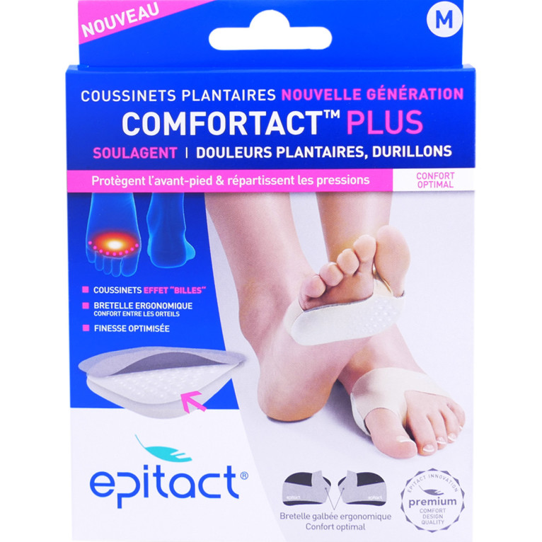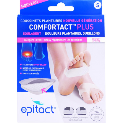 Les coussinets plantaires Nouvelle génération Comfortact EPITACT des protections plantaires à effet bille dans votre parapharmacie en ligne discount, qui soulagent les douleurs sous les pieds et les durillons. Tailles au choix