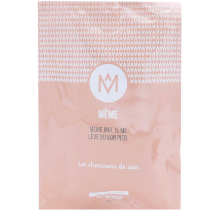 Les Chaussons de Soin pour Pieds discount de MêMe Cosmetics, douceur et bien-être naturel dans votre parapharmacie en ligne à prix discount, pour adoucir et apaiser les pieds et plante de pieds fragilisés et tiraillés par les traitements (chimiothérapie, thérapies ciblées). Pieds. Usage unique