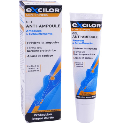 Excilor gel anti-ampoule est destiné à prévenir la formation de celles ci en formant une barrière protectrice contre les frottements grâce au diméthicone.Il soulage et apaise également des douleurs grâce à la camomille présente dans sa formulation.