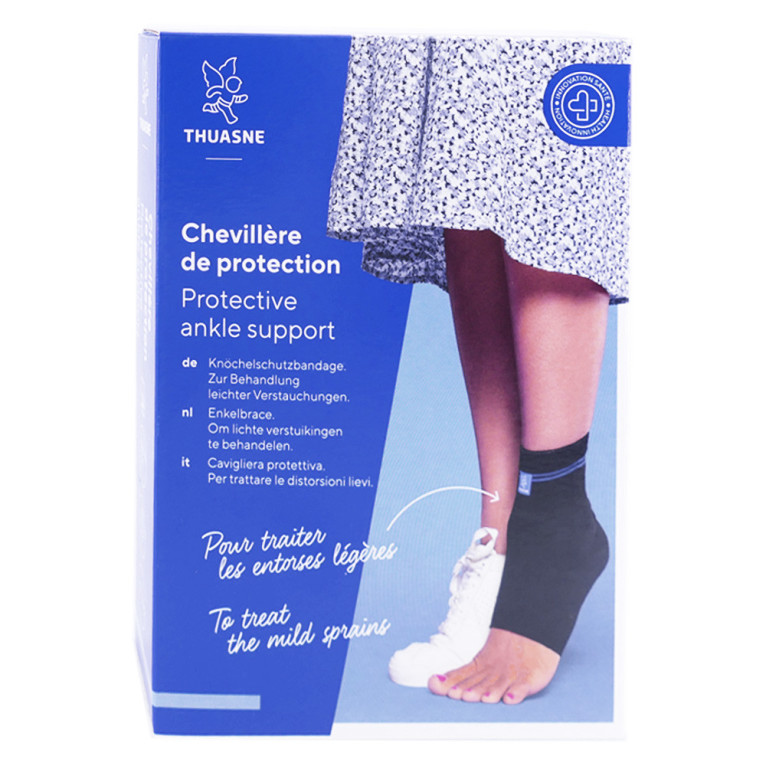 La chevillère de protection noire de Thuasne est idéale pour les personnes sujettes aux entorses ou aux foulures, ainsi que pour les sportifs qui souhaitent prévenir les blessures. Elle est également recommandée pour les personnes en phase de rééducation après une entorse ou une opération de la cheville. Disponible en 6 tailles.