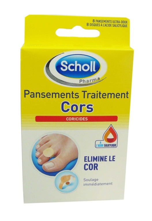 Le laboratoire SCHOLL conçoit des produits experts et chaussures pour apporter confort et bien être aux pieds au quotidien. Les pansements éliminent les cors, protègent et calment grâce au disque coricide ainsi qu’aux emplâtres ultra-doux. La peau saine autour du cor est préservée de toutes bactéries ou prolifération par son adhésif renforcé. Jour après jour, le cor disparaît, la peau est apaisée de toute douleur dès l’application du pansement. Les pansements sont résistants à l’eau.