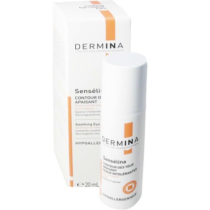 Le Contour des yeux apaisant SENSELINA du laboratoire DERMINA discount, le soin dans votre parapharmacie en ligne à prix discount, qui hydrate et apaise les inconforts des peaux sensibles à intolérantes dès l’application et pour longtemps. Contour des yeux