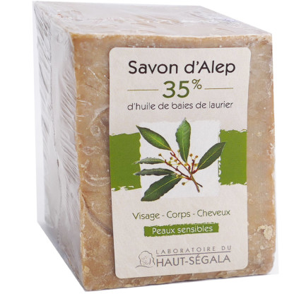 Le Savon d’Alep 35% Baies de laurier du laboratoire HAUT-SEGALA fabriqué depuis la nuit des temps à Alep selon la recette traditionnelle au Chaudron transmise secrètement de père en fils.
