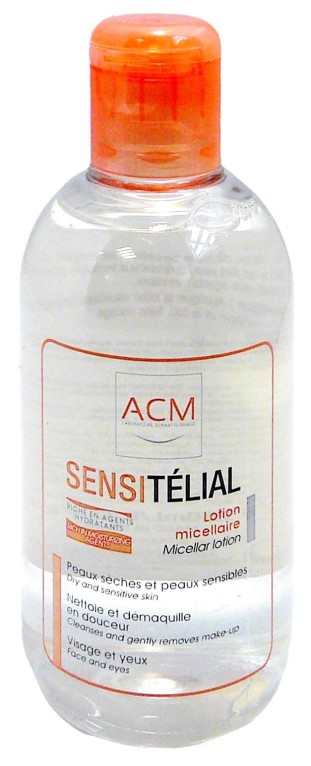 La gamme Sensitélial peaux fragiles et réactives du laboratoire ACM est composée de produits du corps à base d'actifs très doux pour prendre soin des peaux fragiles à tendance érythrosique. La lotion micellaire Sensitelial élimine les salissures et le maquillage, hydrate la peau pour lutter contre la sècheresse, et apaise grâce à ses agents hydratants. Le pH de la peau est respecté. Pratique la lotion micellaire ne nécessite pas de rinçage. La peau est nette, et douce.