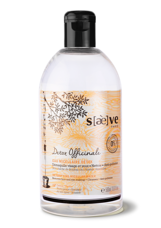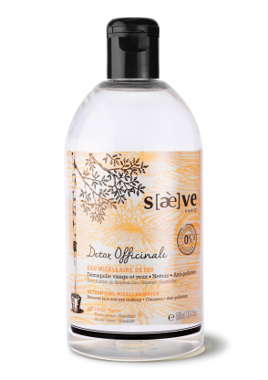 La marque Saeve, est la première marque de cosmétiques française qui propose sous le brevet Immunox ® des soins naturels, experts et ultra-performants à base de Sève fraîche de Bouleau bio aux vertus anti-oxydante, détoxifiante, reminéralisante, revitalisante, et de Chaga bio, «champignon de l’immortalité» qui renferme l’une des plus fortes concentrations en anti-oxydants (25%)du monde végétal et d’autres ingrédients naturels surprenants. Une marque aux promesses authentiques qui utilise une forte concentration d’actifs pour un résultat sur la peau évident, visible et durable. SAEVE Détox Officinale Eau Micellaire est une lotion démaquillante visage & yeux au pouvoir dépolluant. Une Eau Micellaire Détox fraîche et apaisante qui va éliminer efficacement les impuretés et le voile de pollution pour un teint plus éclatant. En un seul geste le grain de peau est affiné, la peau détoxifiée. La peau ainsi purifiée retrouve souplesse, douceur et éclat enveloppé d’une fragrance détox aux notes végétales de Pissenlit, d'Iris et d’agrumes.