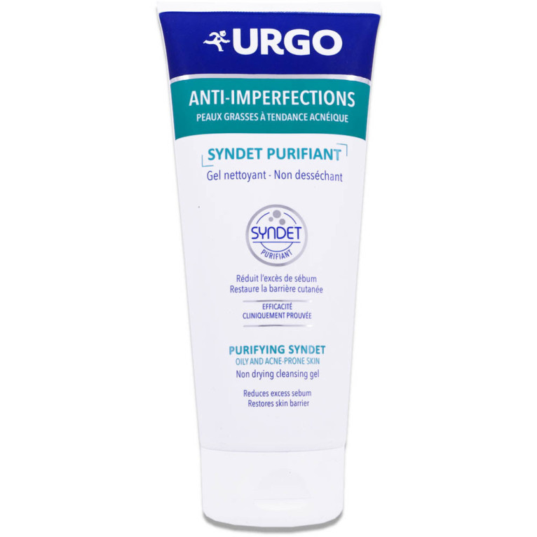 URGO SYNDET PURIFIANT GEL NETTOYANT 200ML est en vente en ligne sur le site de votre parapharmacie à prix discount, conçu pour nettoyer en douceur les peaux à imperfections ou à tendance acnéique du visage, adapté aux adolescents et aux adultes dès 12 ans.