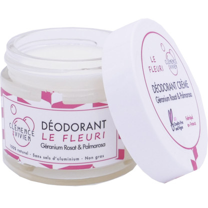 Le laboratoire Clémene & Vivien développe des produits naturels d’origine française labelisés vegan et slow cosmétique afin de respecter éthique et écologie. Les savons à froid surgras et autres produits fabriqués dans l’atelier des Deux-Sèvres contiennent des matières premières végétales pour le respect de la peau de toute la famille. Les déodorants naturels enrichis en poudres naturelles et huiles essentielles innovants sans sels d’aluminium ni conservateurs, s’appliquent au doigt directement sur les aisselles, et prennent soin de la peau même la plus sensible pour un grand moment de douceur et un plaisir des sens. Déodorant naturel Le Fleuri est un déodorant solide sous forme de baume aux senteurs florales délicates, à base de beurre de karité et de 3 huiles essentielles (géranium rosat, palmarosa, lavande). Il élimine les bactéries sous les aisselles qui causent les mauvaises odeurs, nourrit, adoucit et hydrate intensément pour donner à la peau de la douceur et du confort avec un toucher soyeux. La peau est délicatement parfumée avec des notes florales de géranium et lavande pour des senteurs délicates et fleuries.