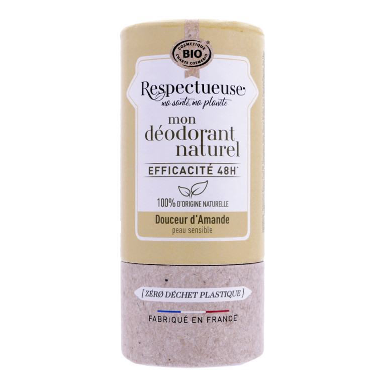 RESPECTUEUSE BIO MON DÉODORANT NATUREL DOUCEUR AMANDE 50G est un déodorant doux et efficace, en vente en ligne sur le site de votre parapharmacie à prix discount.
