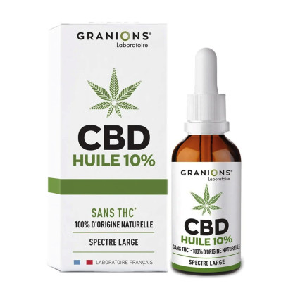 L'huile de CBD 10% des laboratoires GRANIONS est à large spectre sans THC et contient tous les composés du chanvre. Le CBD, également connu sous le nom de cannabidiol, est donc extrait de plantes de chanvre sélectionnées avec soin. L'huile CBD est composée d'un mélange d'huile végétale et d'extraits de chanvre qui contient du CBD. En choisissant cette huile de CBD, vous optez pour un produit de qualité supérieure, fabriqué avec des ingrédients rigoureusement sélectionnés. Son format pratique de 10ml en compte-gouttes vous permet de l'emporter partout avec vous, pour une utilisation quotidienne facile. Commandez-la dès aujourd'hui sur notre site de vente en ligne et bénéficiez de prix avantageux.
