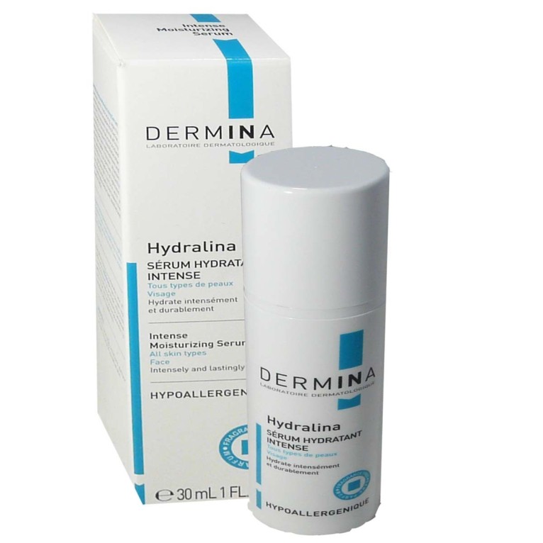 La gamme Hydralina du laboratoire dermatologique DERMINA contient des produits très doux qui viennent aux besoins des peaux sensibles pour protéger et renforcer la peau pour mieux se défendre des agressions quotidiennes, hydrater et apaiser tout en douceur, et redonner de la douceur et du confort. Le Sérum hydratant intense HYDRALINA est à base d’actifs hautement hydratants, anti-irritants, nourrissants, et adoucissants ainsi que d’un complexe d’agents du NMF1 (sérine, acide lactique, urée, allantoïne,…), d’acide hyaluronique pur hautement hydratant, et de beurre de karité pour protéger, rééquilibrer la flore cutané, régénérer les cellules de l’épiderme, hydrater intensément la peau et en profondeur, et l’adoucir pour l’apaiser des inconforts causés par les agressions extérieures, dès le premier soin. Sa texture émulsion fine et légere, et fraiche non collant, laisse sur la peau une grande douceur et un grand confort après le soin. Hypoallergénique. Testé sous contrôle dermatologique. Sans parfum
