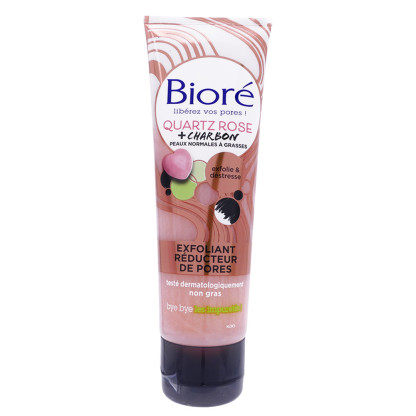 BIORE EXFOLIANT RÉDUCTEUR DE PORES QUARTZ ROSE + CHARBON 110ML