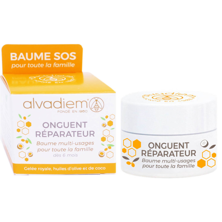 L’Onguent Réparateur des laboratoires ALVADIEM discount, le soin naturel et biologique dans votre parapharmacie en ligne à prix discount, pour réparer, protéger et apaiser les peaux sèches avec crevasses, callosités, gerçures. Visage et corps de toute la famille.
