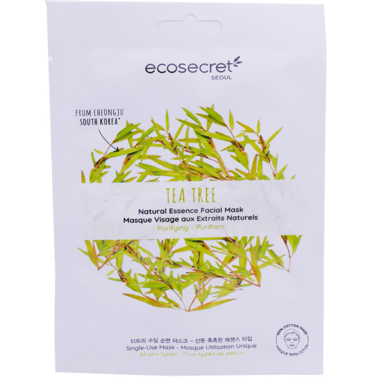 Le Masque Visage au Tea Tree de Cheongju discount d’ECO SECRET SEOUL, les bienfaits coréens dans votre parapharmacie en ligne, dans un masque imbibé spécialement formulé pour purifier tout en douceur et clarifier les peaux grasses à imperfections du visage.