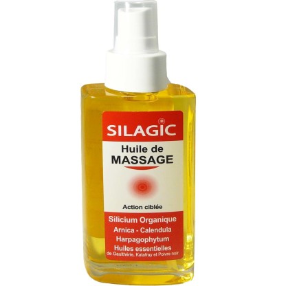 La gamme SILAGIC est composée de produits d’origine naturelle rigoureusement contrôlés et fabriqués en France à base de silicium pour participer au bon fonctionnement des articulations et de la beauté de la peau. Huile de massage SILALGIC est un soin spécialement formulé pour rétablir le confort articulaire en association avec les bienfaits d’une application par massage. Sa formule unique est composée de silicium organique naturellement présent dans l’organisme, sous forme liposoluble qui contribue à maintenir une bonne fonction articulaire, de l’harpagophytum qui favorise la souplesse et le confort articulaire, d’arnica pour décongestionner les tissus et favoriser la récupération musculaire et articulaire, de calendula pour apaiser, et adoucir la peau, et des huiles essentielles 100% pures et naturelles de gaulthérie, katafray et poivre noir qui ont la propriété de diffuser une chaleur douce au contact avec la peau et offrent un soulagement immédiat. Sa texture fluide qui pénètre rapidement à l’application laissera la peau douce avec une sensation de confort instantané. Sans paraben, sans PEG