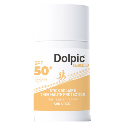 DOLPIC STICK SOLAIRE 50+ 15ML est en vente en ligne sur le site de votre parapharmacie à prix discount, offrant une très haute protection solaire pour les peaux sensibles et délicates.