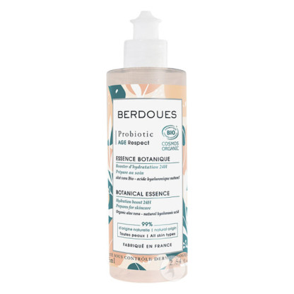 Découvrez la gamme BERDOUES PROBIOTIC BIO, une ligne de produits cosmétiques naturels et biologiques qui offre une solution complète pour prendre soin de votre peau. L'ESSENCE BOTANIQUE est une essence hydratante et revitalisante qui contient des probiotiques pour aider à rétablir l'équilibre naturel de la peau. Elle contient également des extraits de plantes bio come l'aloe Vera qui permettent un nourrissage et une hydratation parfaite de la peau . Sa texture gélifiée permet un excellent soin pour toute la peau . Cette essence est parfaite pour tous types de peaux