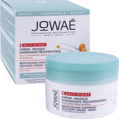 La marque JOWAE inspirée des rituels des femmes coréennes se compose de produits cosmétiques phytoactifs issus de la recherche franco-coréenne à base de lumiphénols et ingrédients naturels pour prendre soin de la peau de toutes les femmes et révéler beauté et confort. La gamme Hydratation Energisante permet grâce aux pouvoirs du Kumquat de redonner de l’énergie et d’hydrater la peau sèche et redonner au visage confort et éclat pour longtemps. La Crème Masque hydratante Récupératrice Nuit est un soin défatiguant à base de Lumiphénols (riche en antioxydant) et de Kumquat (riche en vitamines), associé à un extrait de papaye. Il va intensément hydrater et recharger la peau en énergie pour la protéger des agressions extérieures (pollution, changement de température,…) en formant un film protecteur et laisser une grande douceur. Dès l’application, la peau retrouve sa souplesse et confort. Au réveil visage retrouve son éclat et sa fraîcheur, les marques de fatigue sont estompées, la peau est comme neuve et lumineuse comme après une longue nuit de sommeil. Testé sous contrôle dermatologique. Non comédogène. Sans paraben, sans phénoxyéthanol, sans huile minérale, sans ingrédient d'origine animale, sans silicone, sans colorant de synthèse