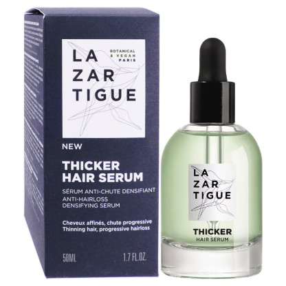 Thicker Hair discount de LAZARTIGUE, la puissance végétale dans votre parapharmacie en ligne à prix discount, dans un sérum anti-chute densifiant vegan pour freiner la chute de cheveux progressive et stimuler la repousse.