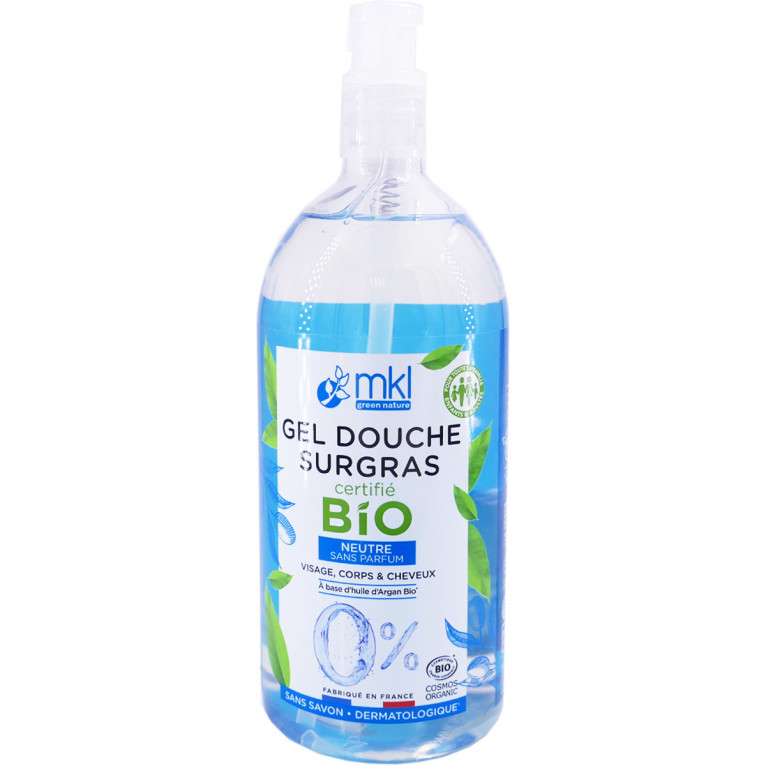 Le Gel douche Surgras Bio Neutre de MKL Green Nature discount, le soin d’hygiène respectueux de la peau et des cheveux, aux propriétés adoucissantes et nourrissantes, dans votre parapharmacie en ligne, Visage, corps, cheveux. A partir de 3 ans.