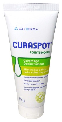 Le Gommage désinscrustant Points noirs CURASPOT de GALDERMA est un soin doux spécialement conçu pour nettoyer et gommer les peaux grasses jeunes à tendance acnéique du visage.