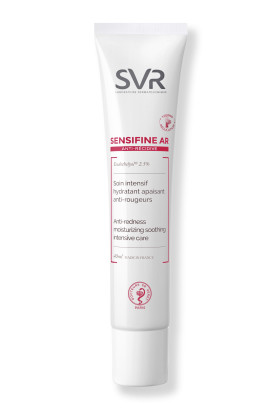 La gamme Sensifine de SVR est composée de soins très doux pour nettoyer tout en douceur et prendre soin des peaux sensibles. Le Soin intensif Sensifine Anti-récidive de SVR composé de squalane végétal, d’endothelvol (2,5%), d’extrait de réglisse, et de pigments verts, estompe les rougeurs (passagères ou permanentes), améliore la microcirculation cutanée et diminue l’apparence des petits vaisseaux, lutte contre l’apparition de nouvelles rougeurs, hydrate intensément et pour longtemps, et apaise immédiatement de tout inconfort et tiraillements. Sa texture fraîche calmera toute sensation d’échauffements et de rougeurs. Instantanément la peau très douce est très confortable et apaisée.