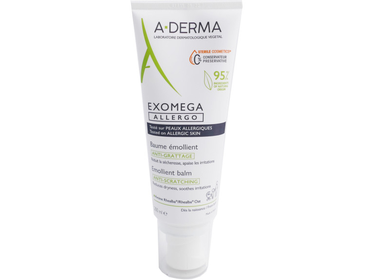 Le Baume Emollient Anti-grattage EXOMEGA ALLERGO à la texture hybride crème et baume, qui pénètre rapidement à l’application sans effet collant pour un confort immédiat, est à base d’une formule naturelle et biologique. La filaxérine et la vitamine B3 nutritifs vont renforcer la barrière de l’épiderme pour lutter contre les récidives de démangeaisons, et réduire la sècheresse cutanée. Ce soin douceur diminue les irritations, espace les pics d’irritations, et apaise rapidement grâce à sa richesse en extrait de Plantules d’Avoine Rhealba d’origine biologique et au BioVect, (vecteur d’origine naturelle). L’extrait de Plantules d’Avoine Rhealba va également rééquilibrer le microbiome cutané. La peau retrouve tout son confort, et sa douceur dès la première utilisation. Grâce à la technologie Cosmétique Stérile, le produit garantit efficacité et sécurité pour le respect de la peau et du microbiome cutané, et reste stérile pendant toute la durée d’utilisation grâce à son tube hermétique. Formule à 95% d’ingrédients d’origine naturelle : sans parfum, sans conservateur ; vegan : sans ingrédient d’origine animale, Conçu pour minimiser les risques de réactions allergiques