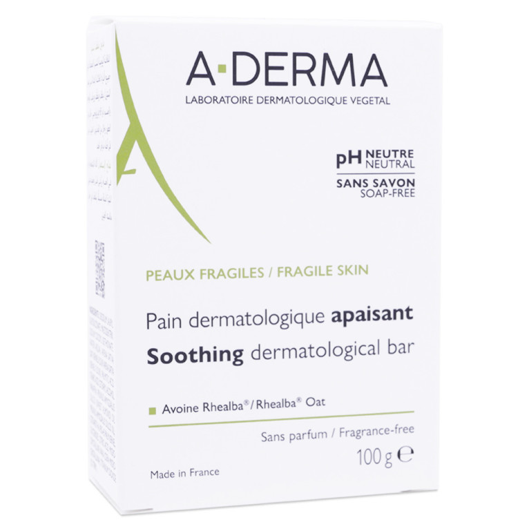 ADERMA est une marque reconnue pour ses produits dermatologiques doux et efficaces. Le Pain Dermatologique Apaisant contient de l'Avoine Rhealba, un ingrédient clé qui participe au bien-être de la peau sensible et aide au fonctionnement optimal de la barrière cutanée.