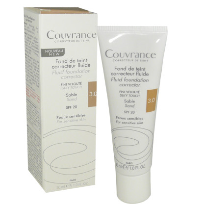 Fond de teint correcteur fluide Couvrance d’AVENE dans votre parapharmacie en ligne à prix discount, le fond de teint qui camoufle naturellement les imperfections du visage et unifie le teint des peaux sensibles. Couleur 3.0 Sable