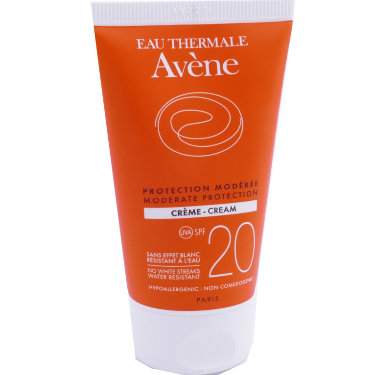 Crème SPF20 d'AVENE dans votre parapharmacie en ligne à prix discount, la protection solaire modérée des peaux sèches sensibles non sujettes aux coups de soleil du visage.