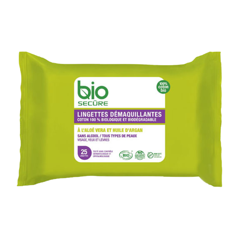 Les lingettes de BIO SECURE, les lingettes qui éliminent impuretés et maquillage du visage, des yeux et des lèvres même les plus sensibles.
