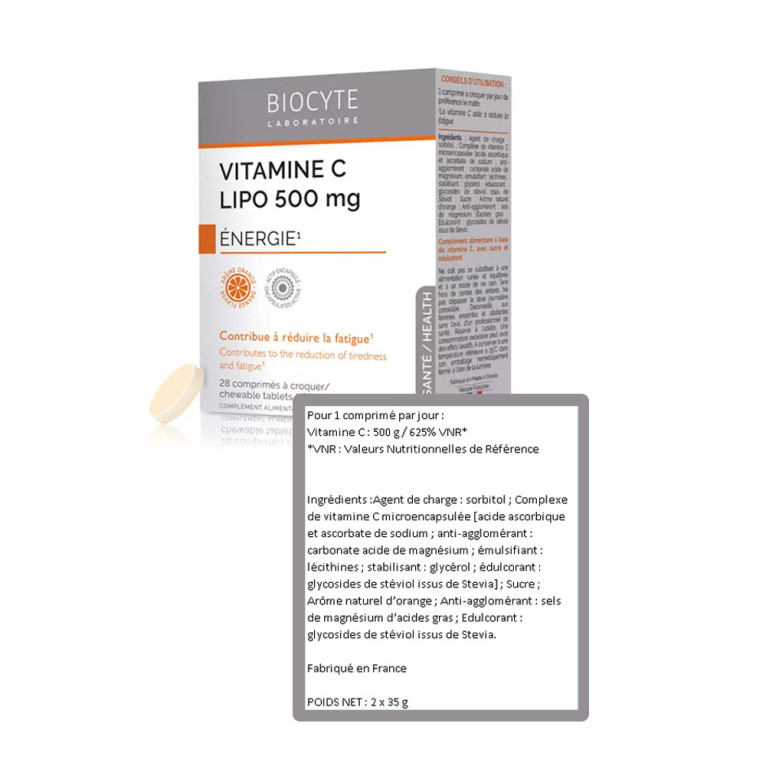 BIOCYTE VITAMINE C LIPO 500MG ÉNERGIE 28 COMPRIMÉS