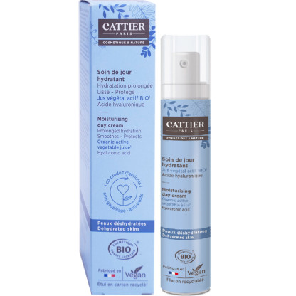 Soin de jour Hydratant Bio discount de CATTIER, la beauté certifiée BIO d’origine naturelle dans un soin conçu pour offrir un bain d’hydratation immédiat et durable aux peaux déshydratées même les plus assoiffées, dans votre parapharmacie en ligne à prix discount. Visage.