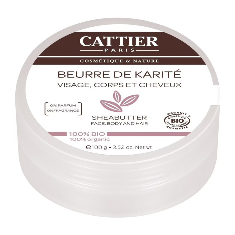 Beurre de karité Bio nature de CATTIER discount, le beurre aux multiples propriétés à prix discount dans votre parapharmacie en ligne, pour la beauté et le confort de la peau et des cheveux.
