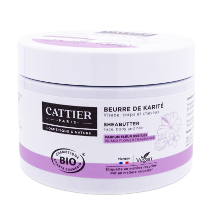 Beurre de karité Bio Fleurs des îles de CATTIER discount, le beurre aux multiples propriétés dans votre parapharmacie en ligne à prix discount, pour la beauté et le confort de la peau et des cheveux, et invite à l'évasion.