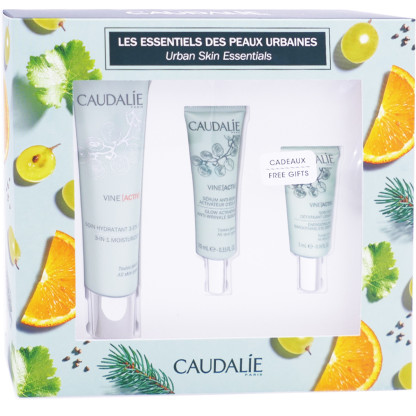 Le Coffret « Les Essentiels des Peaux Urbaines » de CAUDALIE, 3 soins anti-pollution et réconfort pour retrouver t un visage éclatant ! Soin Hydratant 3 en 1 Vine[Activ] (40ml) ; Sérum Anti-rides Activateur d’éclat Vine[Activ] (10ml) offert ; Soin Yeux défatiguant lissant Vine[Activ] (15ml) offert.