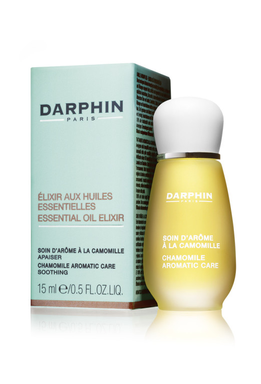 La gamme Soins d’arômes de DARPHIN est composée de soins aux huiles essentielles 100% naturelles pour retrouver de l’éclat des peaux fatiguées du visage. L’élixir soin d’arôme à la Camomille composé d’huiles essentielles naturelles (camomille, bois de santal, sauge, lavande, bisabolol), va protéger la peau en renforçant son film protecteur, nourrir, apaiser et diminuer l’apparition des rougeurs et irritations, et lui redonner de l’éclat. La peau retrouve sa luminosité, son confort, sa douceur et sa souplesse pour un teint éclatant de lumière, avec un délicat parfum apaisant pour redonner de la douceur à la peau.