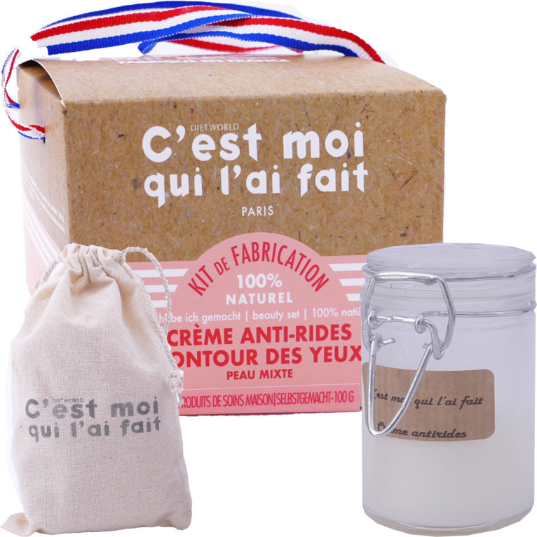 Kit de fabrication Crème Anti-ride « C’est moi qui l’ai fait » de DIET WORLD à prix discount, un anti-âge naturel à faire soi-même dans votre parapharmacie en ligne pour préserver la jeunesse de la peau et la préserver du vieillissement. Pour tous types de peaux. Contour des yeux