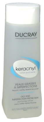 La gamme KERACNYL du laboratoire Ducray est composée de produits spécialement adaptés aux peaux acnéiques et/ou à imperfections du visage et du corps. La lotion purifiante Kéracnyl composée d’acides glycoliques, salicyliques et lactique, d’eau d’hamamélis et bisabolol nettoie la peau en douceur, purifie, matifie, resserre les pores et apaise la peau. Pratique la lotion purifiante ne nécessite pas de rinçage. Dès la première utilisation la peau est purifiée, fraîche, et retrouve tout son confort.