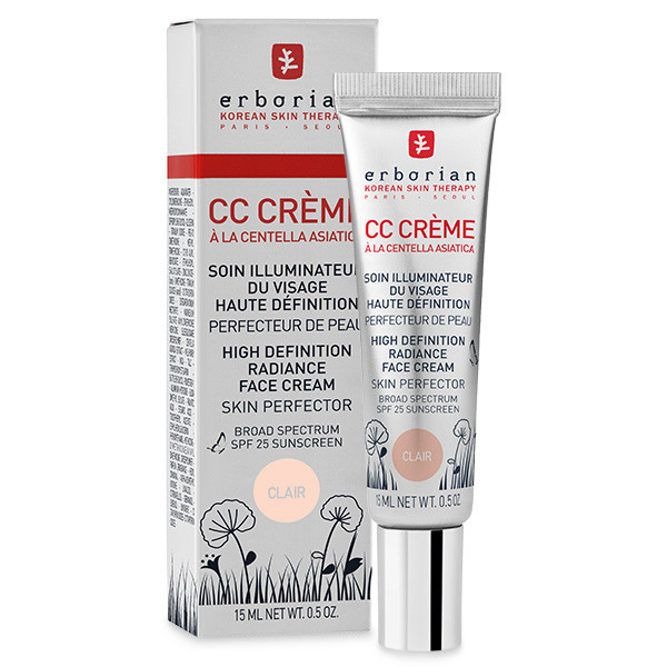 Le laboratoire ERBORIAN conçoit des produits cosmétiques inspirés des traditions coréennes contenant des herbes coréennes pour redonner à la peau de l’éclat. La CC crème Clair d’ERBORIAN protège la peau du soleil avec son indice UV (SPF25) ainsi que des agressions extérieures pour préserver les cellules cutanées du vieillissement prématuré, estompe les petits défauts cutanés et les ridules de déshydratation, affine le grain de peau, participe à la cicatrisation de l’épiderme, apaise et adoucit grâce à son innovation venue de Corée composée de centella asiatica, de vitamine E, d’herbe du tigre, d’extrait de miel ainsi que de pigments encapsulés qui permettent de se fondre sur la peau pour unifier le teint. Sa texture ultra fine pénètre rapidement pour laisser la peau lumineuse et fraîche dès l’application. Elle retrouve une grande douceur et est veloutée, sans défauts. Jour après jour, la peau est nourrie, réparée, les rides et ridules sont moins apparentes.